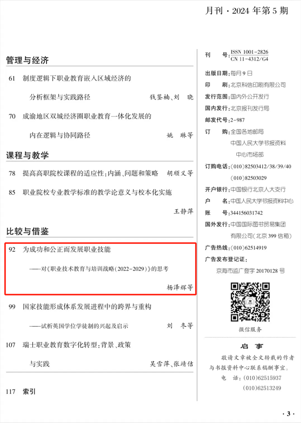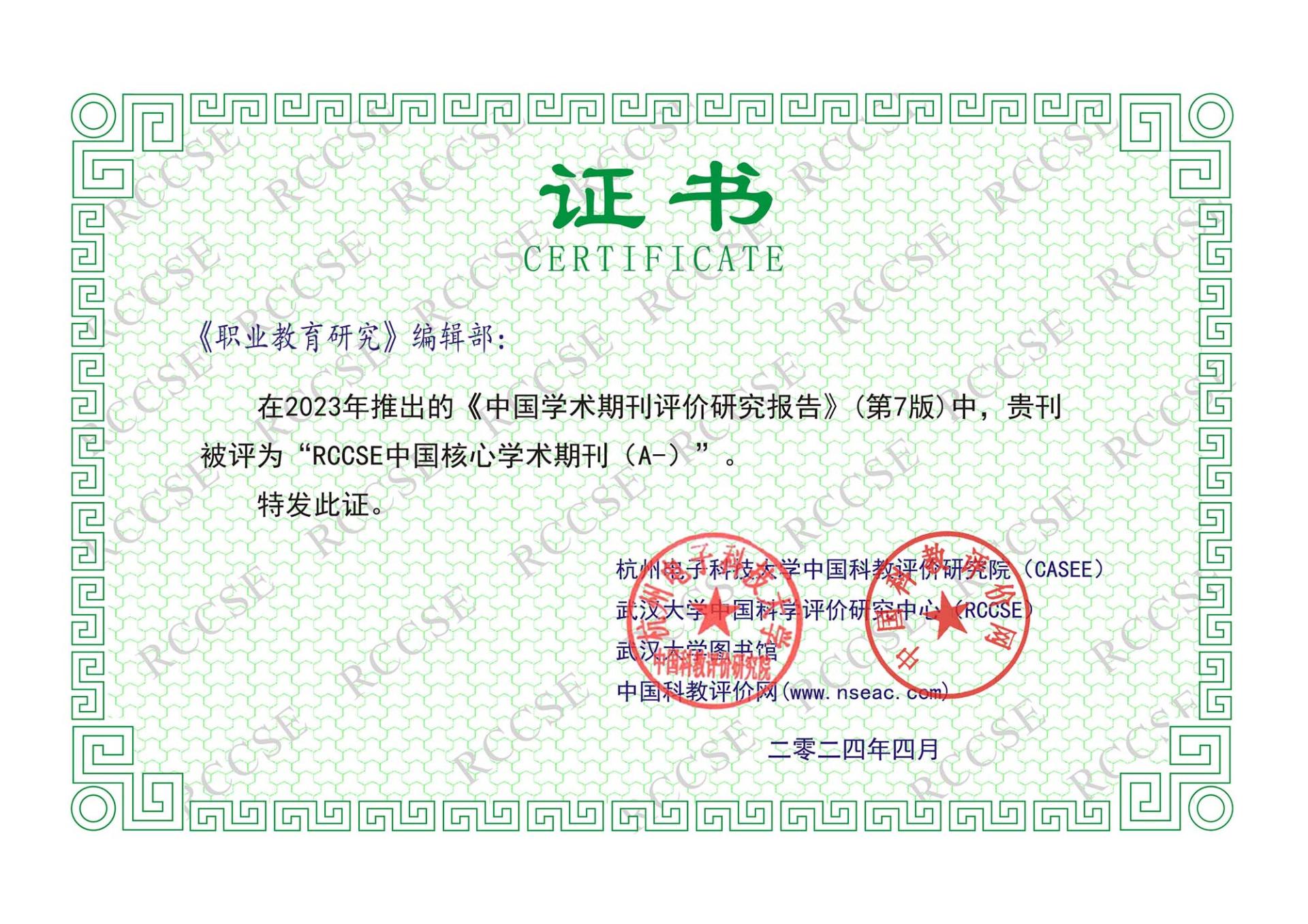 《职业教育研究》入选RCCSE中文核心学术期刊